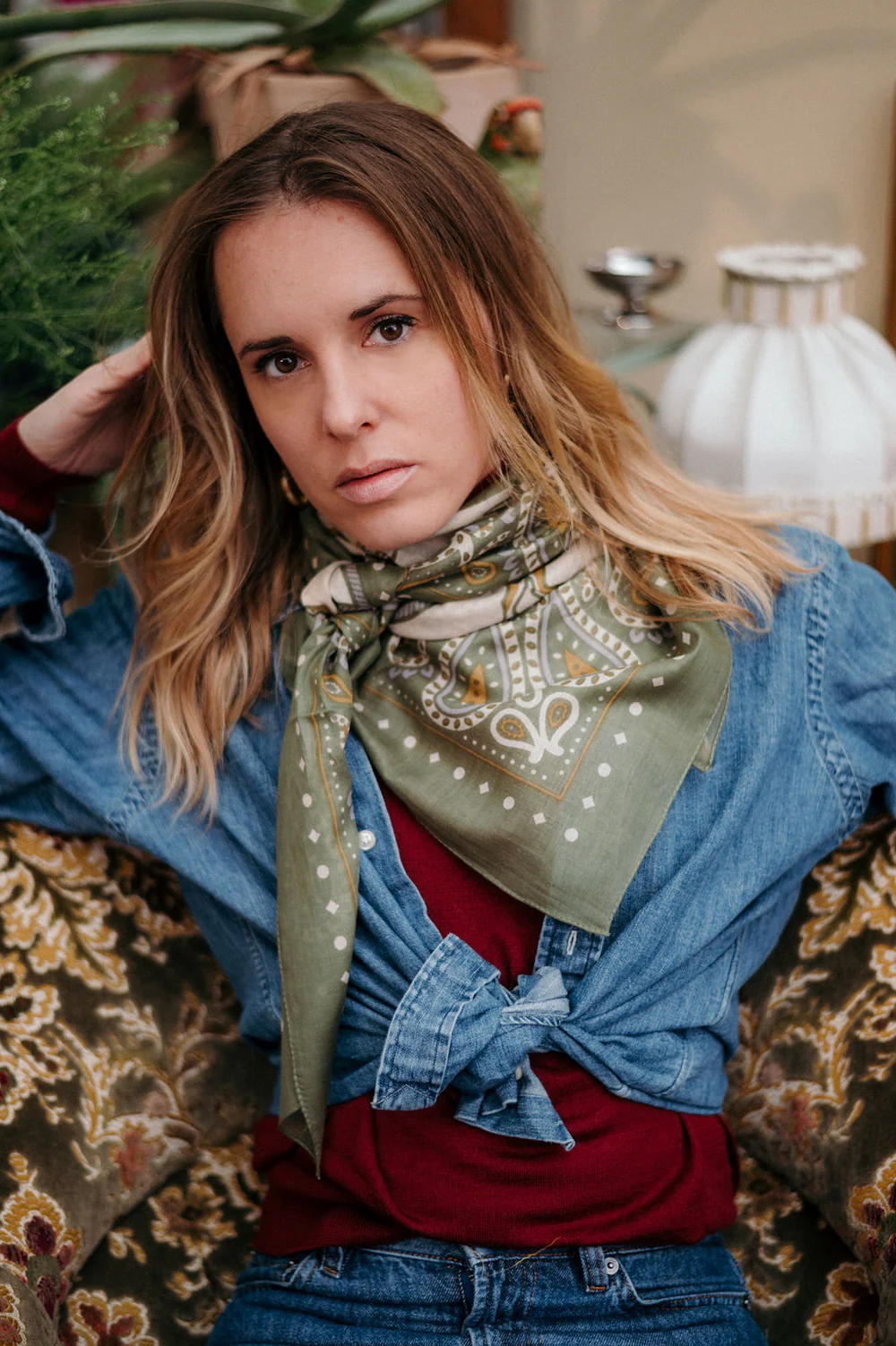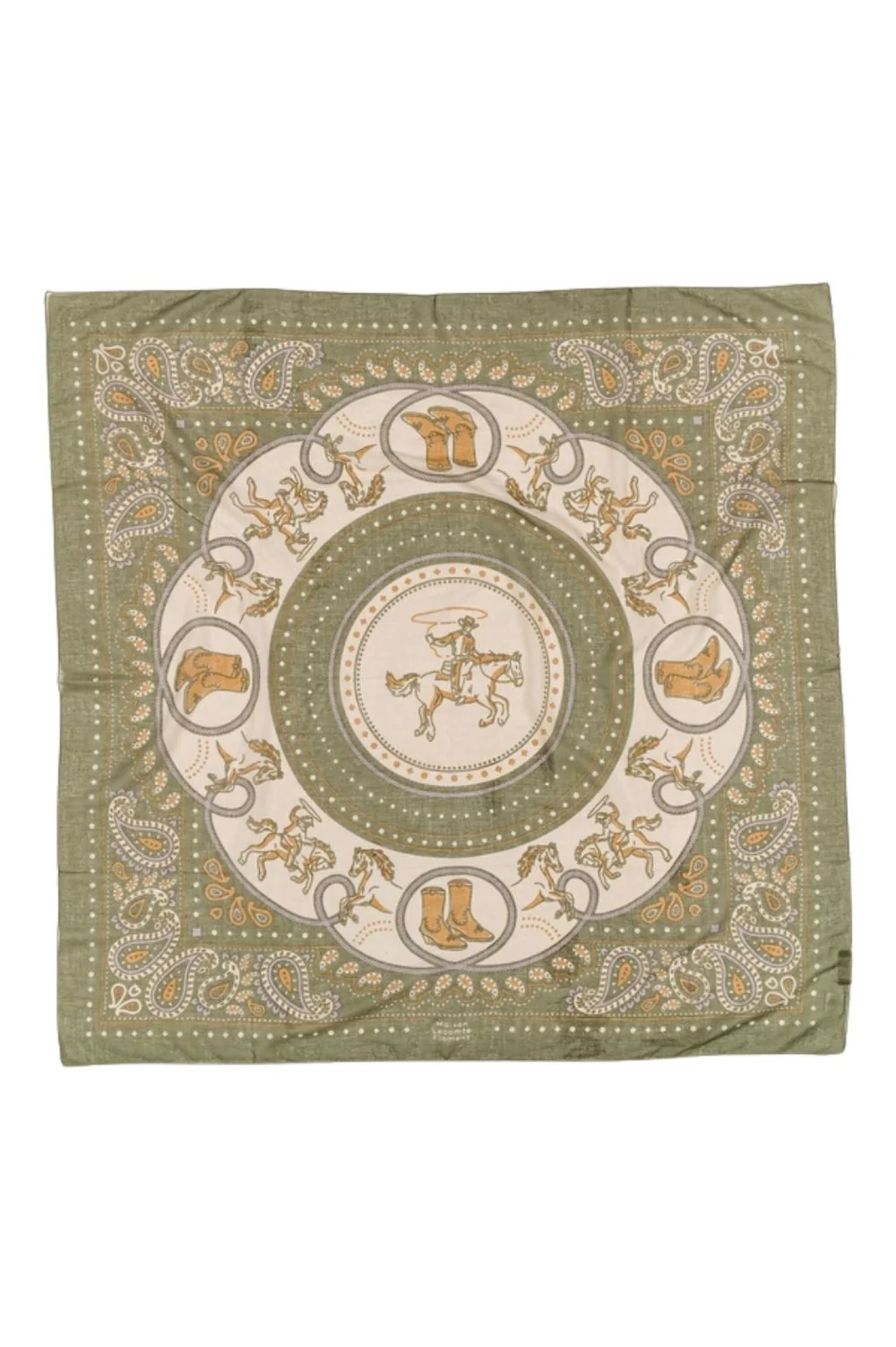 Notre Foulard Rodeo kaki en voile de coton, immersion dans le « Wild West ». La légèreté du voile de coton crée un accessoire d’une élégance, alliant chaleur et sophistication dans une palette de kaki raffiné.