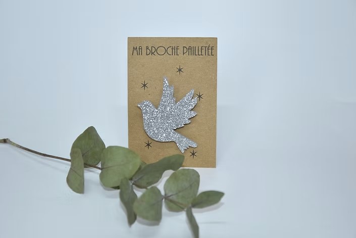 Jolie Broche Colombe Paillettes couleur argent, girly et tendance. Superbe création encore une fois de Paillettes & Superflu pour égayer vos tenues.