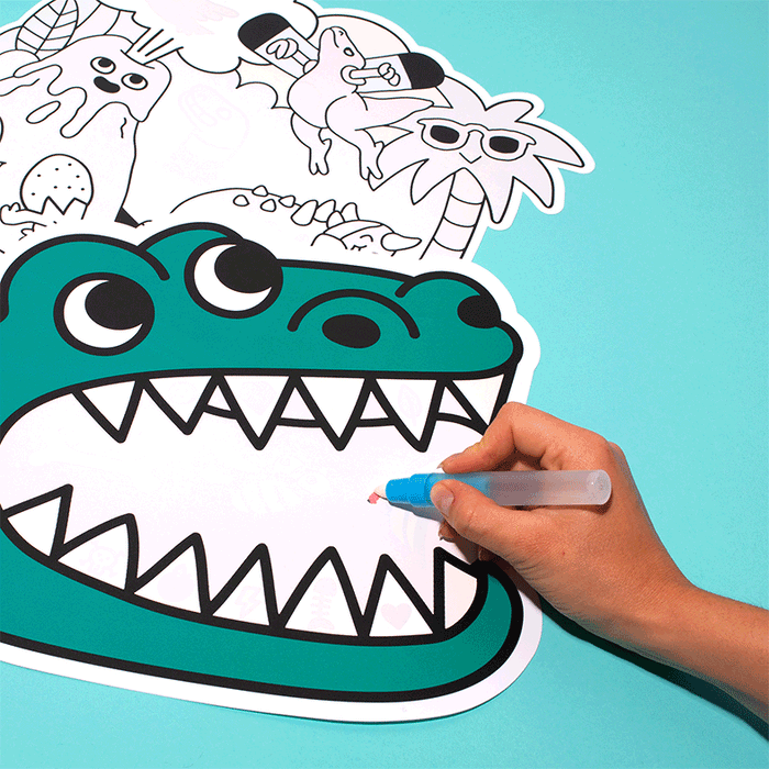 En passant le stylo magique rempli d’eau sur le set, les couleurs apparaissent comme par magie !
