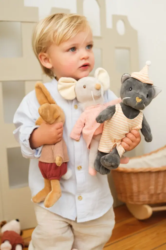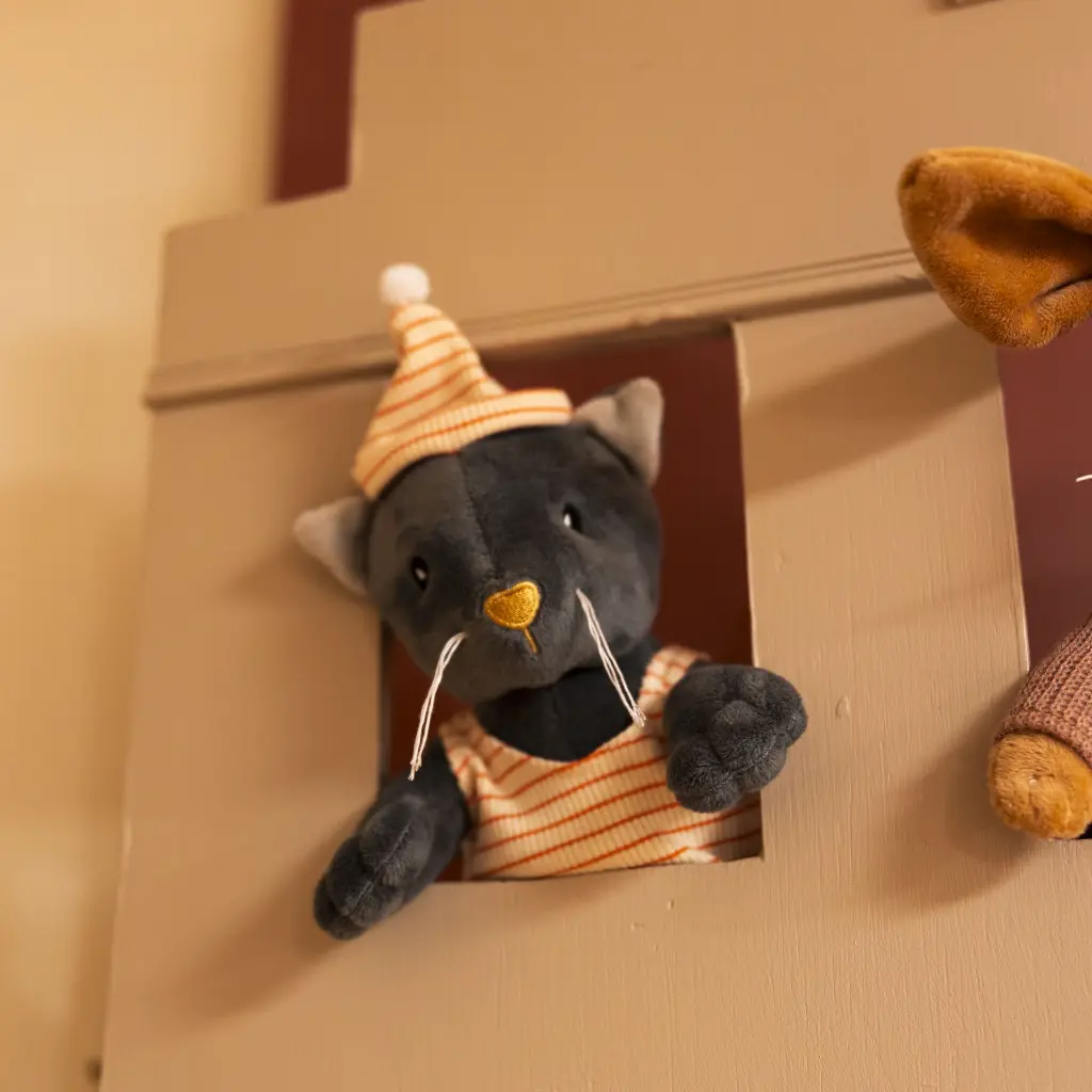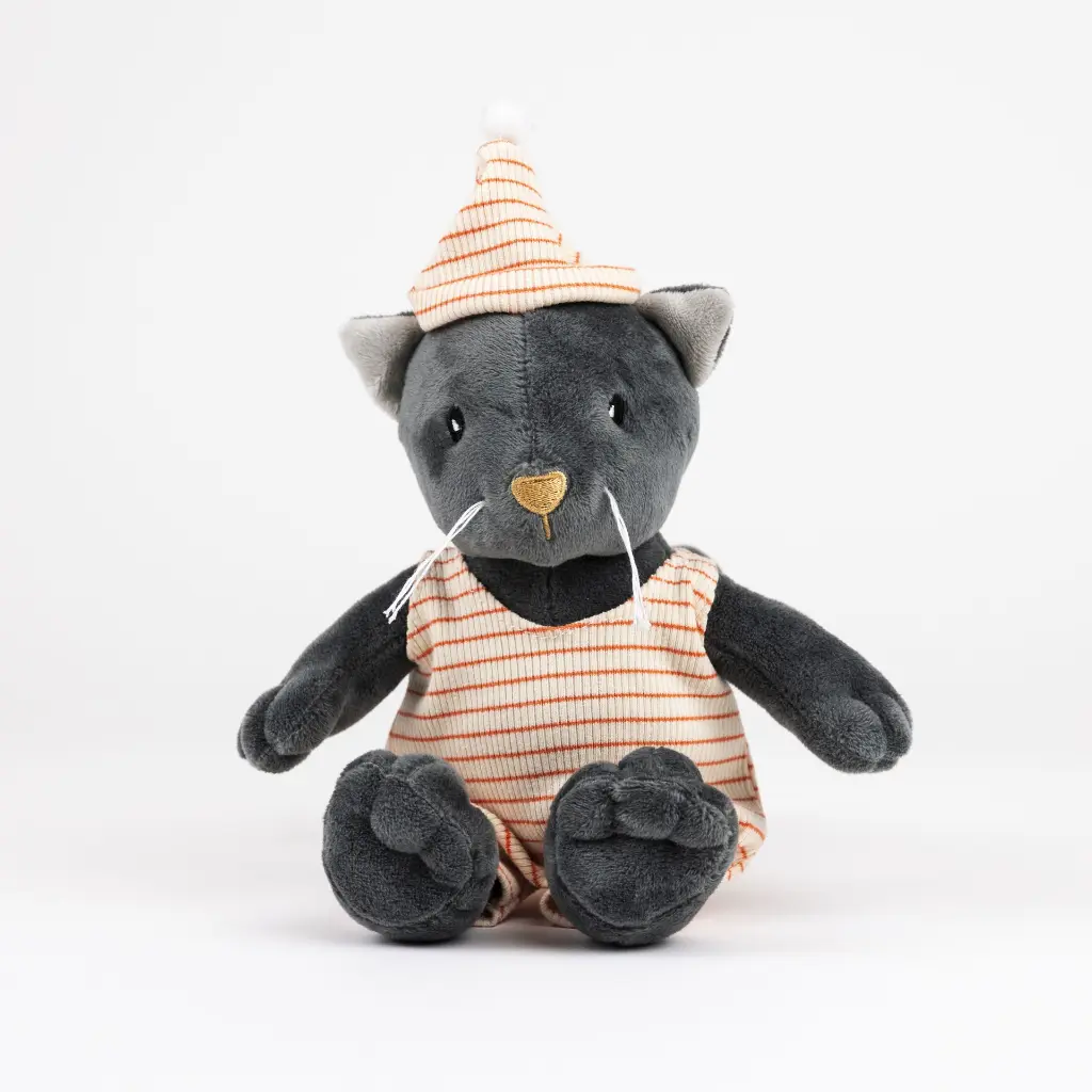 Malo le chat est un chaton en peluche tout doux qui fait partie de la famille « Friends ». Vêtu d’une tenue rayée et d’un petit chapeau, Malo est toujours prêt pour les câlins et les nouvelles découvertes. Avec ses traits doux et son corps souple, cet adorable compagnon est là pour accompagner les tout-petits dans leurs premières aventures.