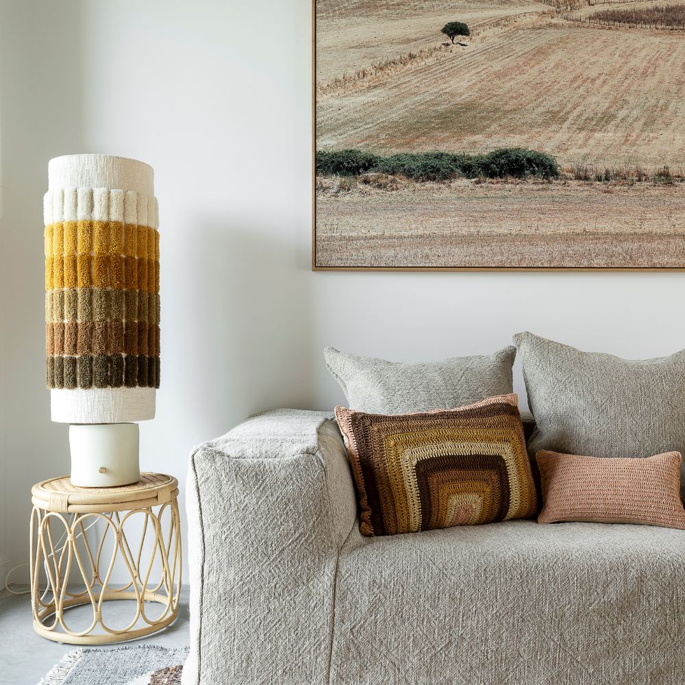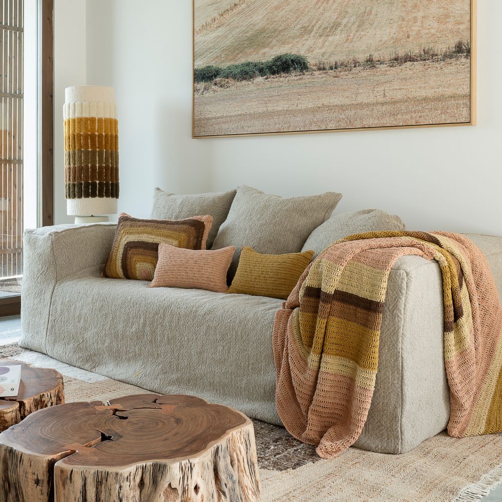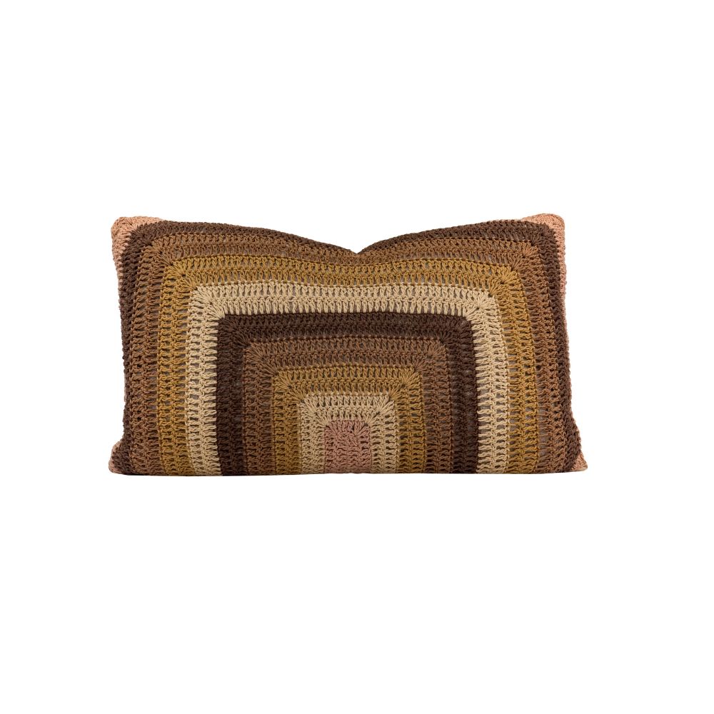 Coussin en coton crochet à tissage manuel, fermeture zippée.