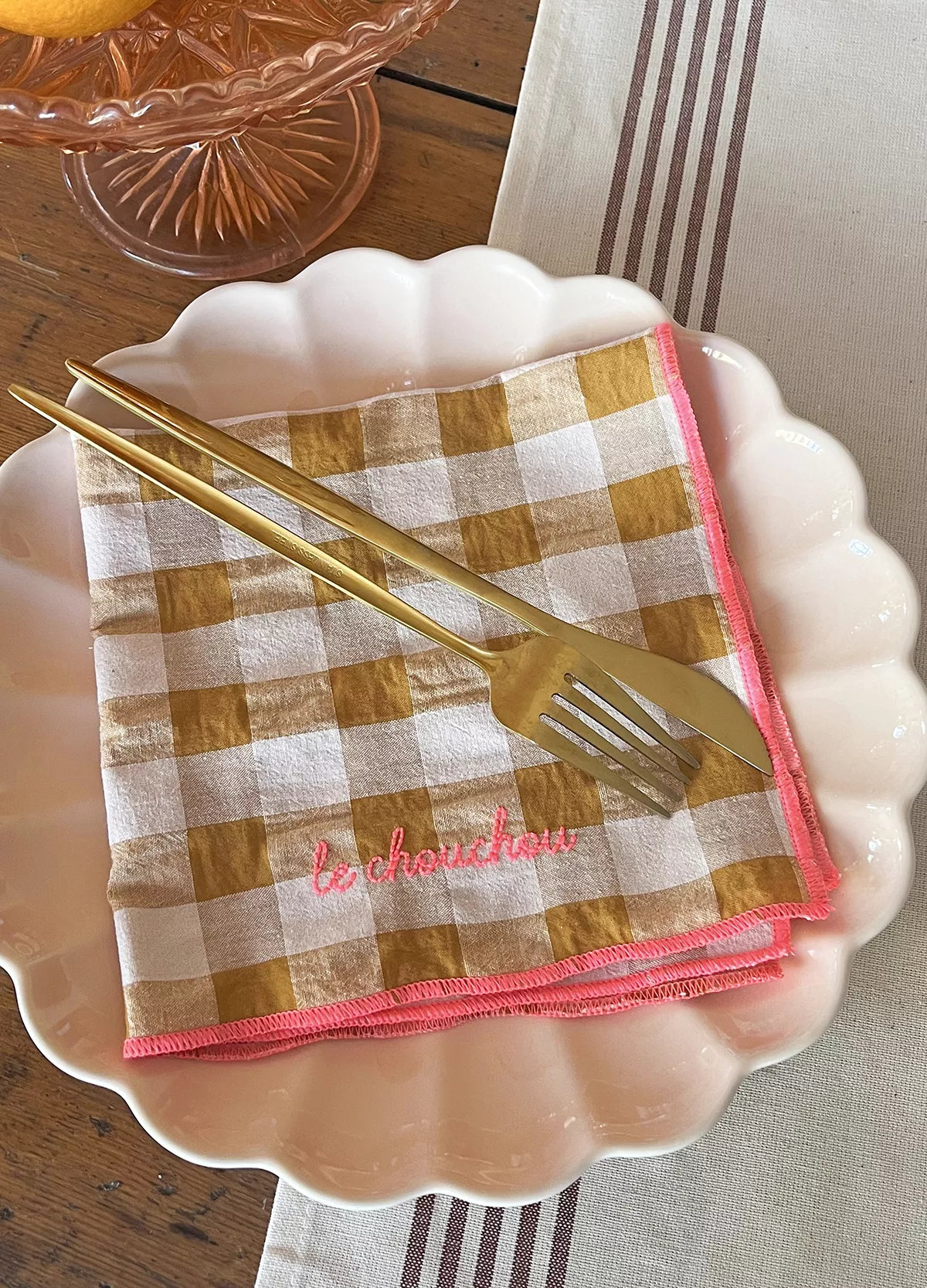 SERVIETTE DE TABLE BRODÉE LE CHOUCHOU MOUTARDE