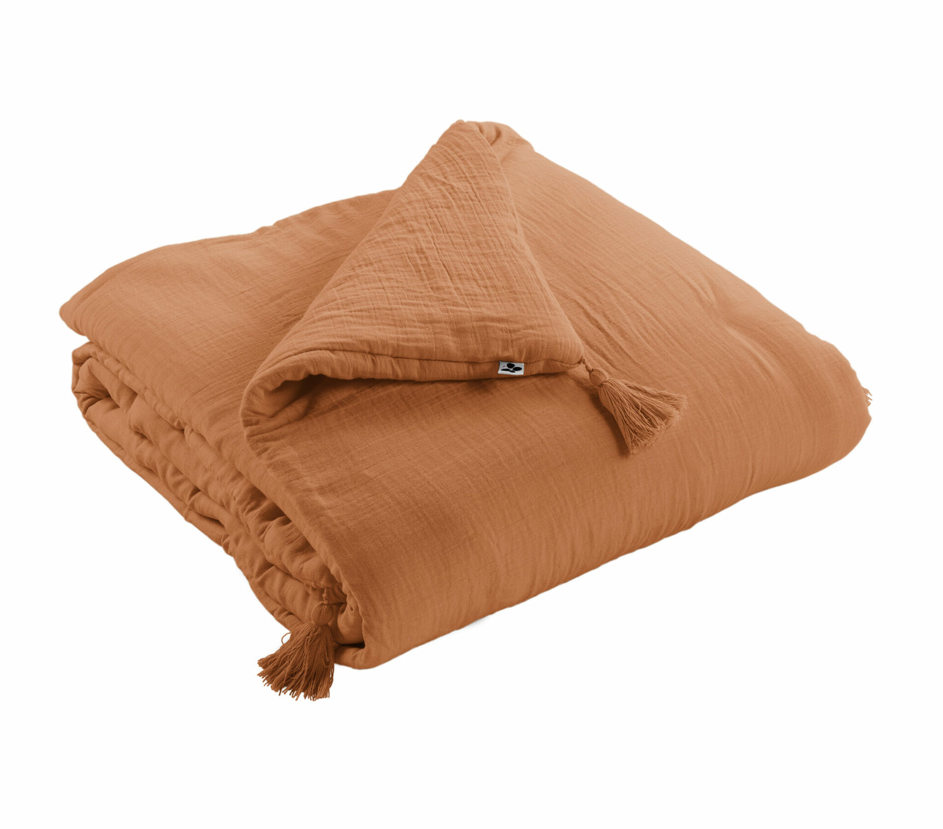Bout de lit 90 x 200 cm Gaze de coton unie GAÏA Abricot