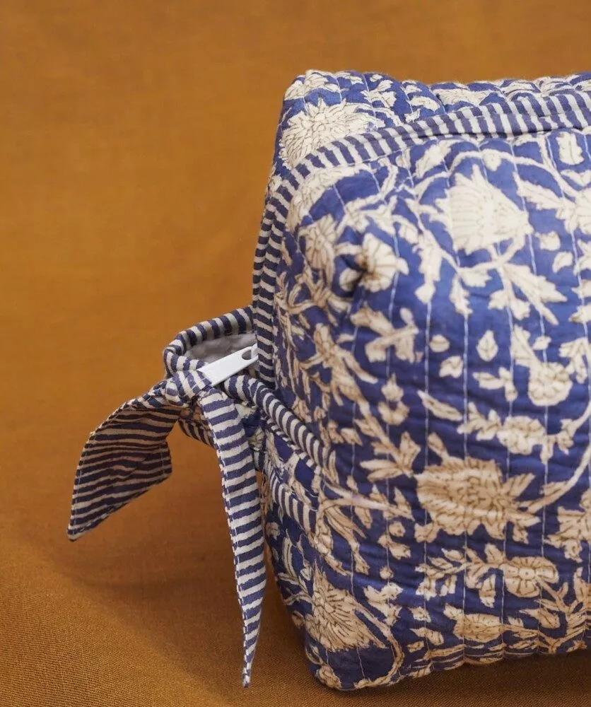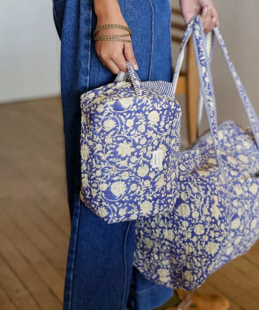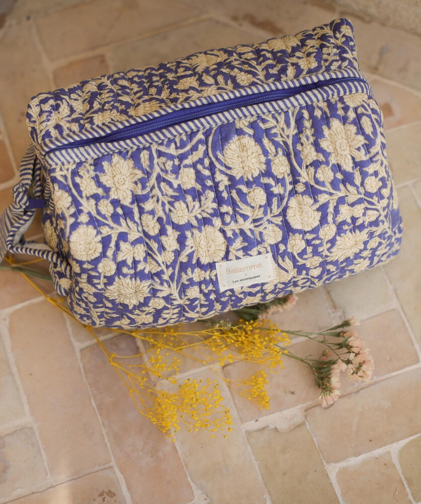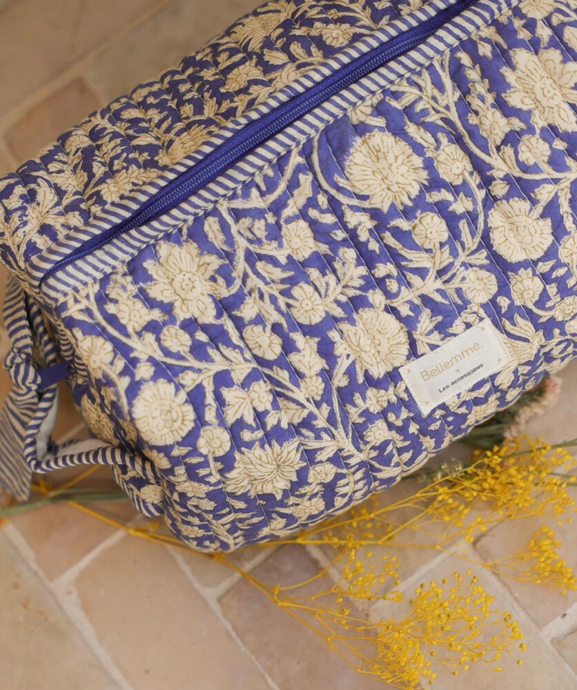 *L’impression au block-print est un procédé artisanal dans lequel chaque tampon destiné à imprimer le motif est gravé dans le bois puis imprégné de teinture pour être appliqué manuellement.
