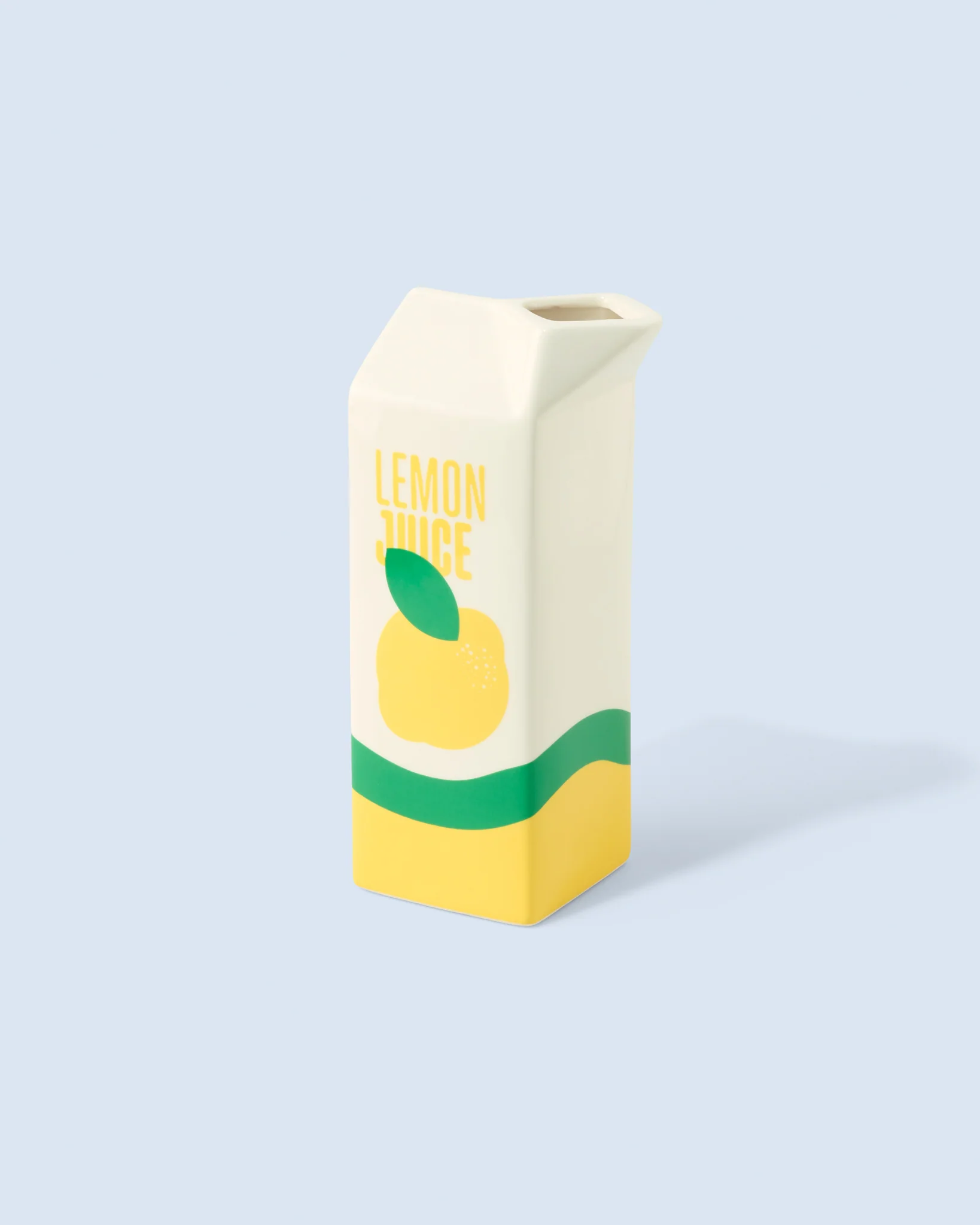 Petit frère du vase Orange Juice, qui commençait à se sentir un peu seul, le vase Lemon Juice a vite trouvé sa place. C’est même lui qui a inspiré les salières-poivrières Juice. Une vraie famille iconique. 🍋