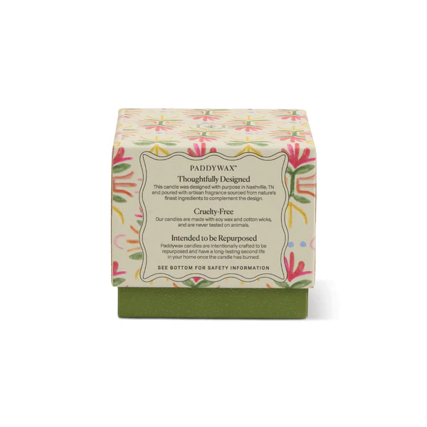 Chaque bougie est présentée dans une boîte coulissante illustrée, dont les motifs sont assortis à chaque bouton de fleur.