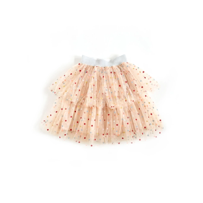Jupe Colombine courte beige à pois multicolores – taille unique 3 à 10 ans
