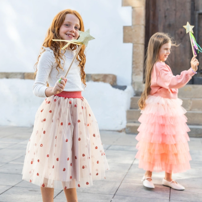 Jupon Célestine Long Beige à Sequins Cœurs Rouges | Ratatam Kids