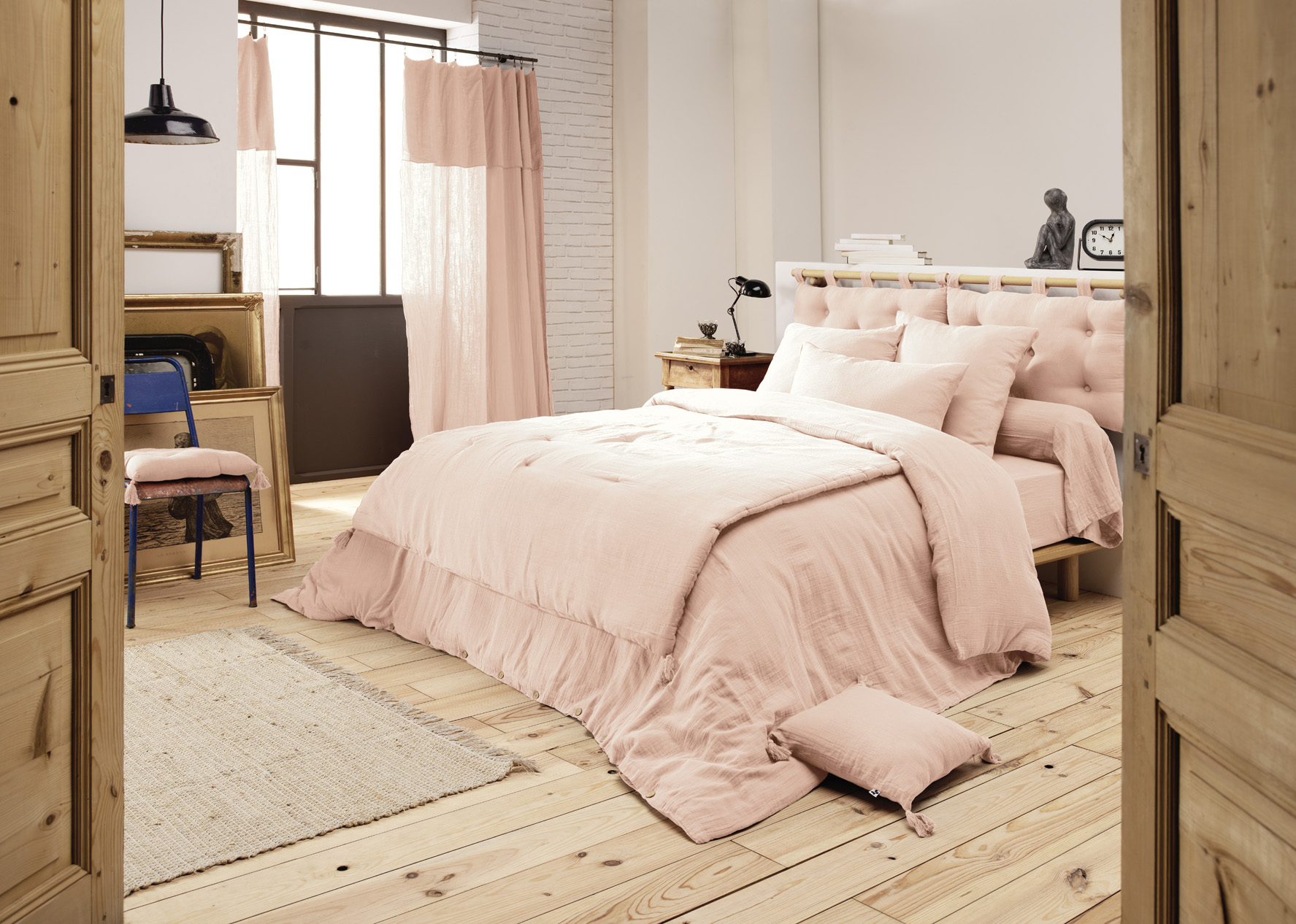Bout de lit 90 x 200 cm Gaze de coton unie GAÏA Guimauve