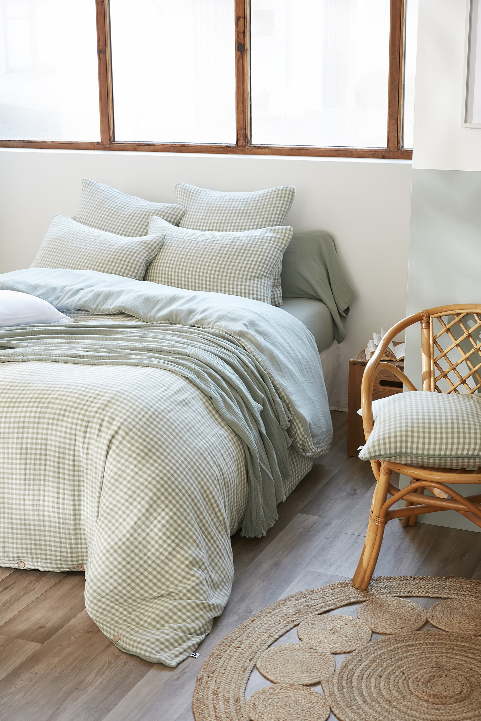 Housse de couette réversible 260 x 240 cm Gaze de coton tissée teinte VICKIE Eucalyptus
