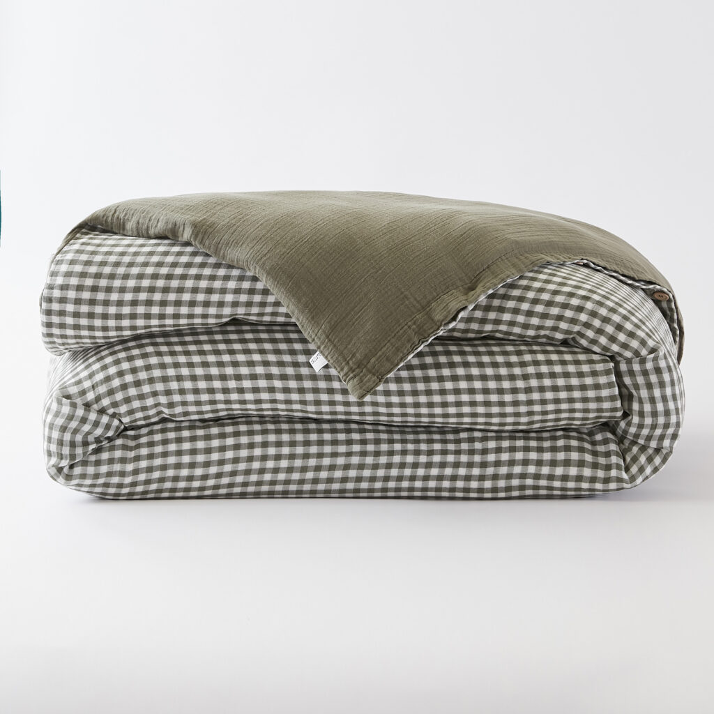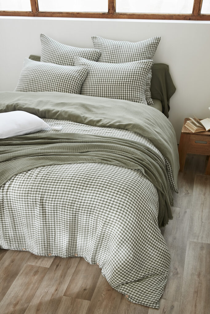 Housse de couette réversible 260 x 240 cm Gaze de coton tissée teinte VICKIE Romarin