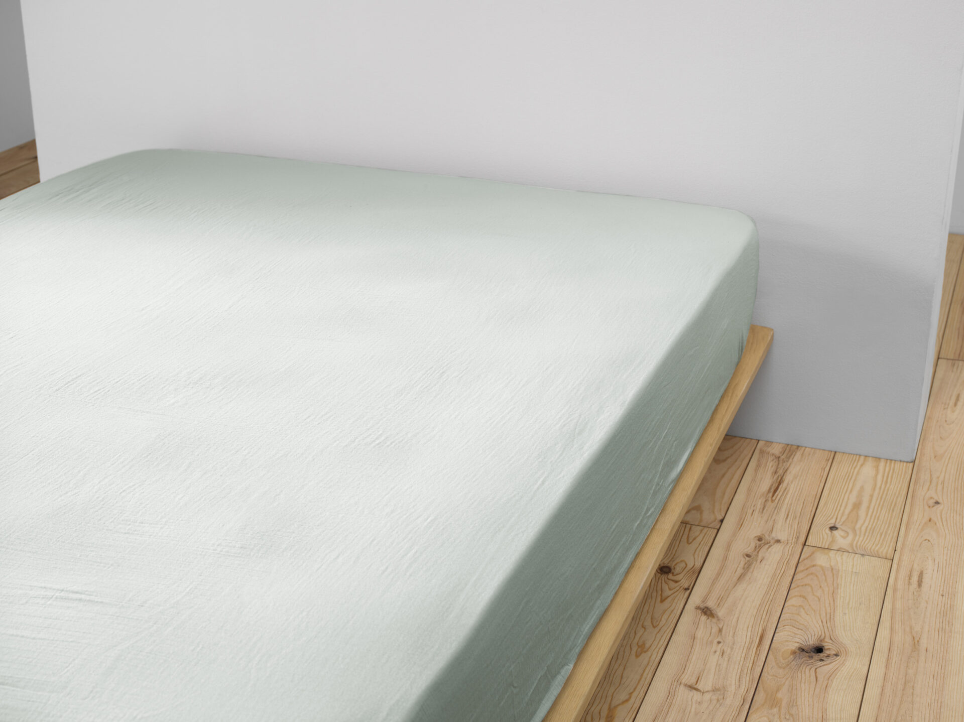 Drap housse 160 x 200 cm Gaze de coton unie GAÏA Eucalyptus