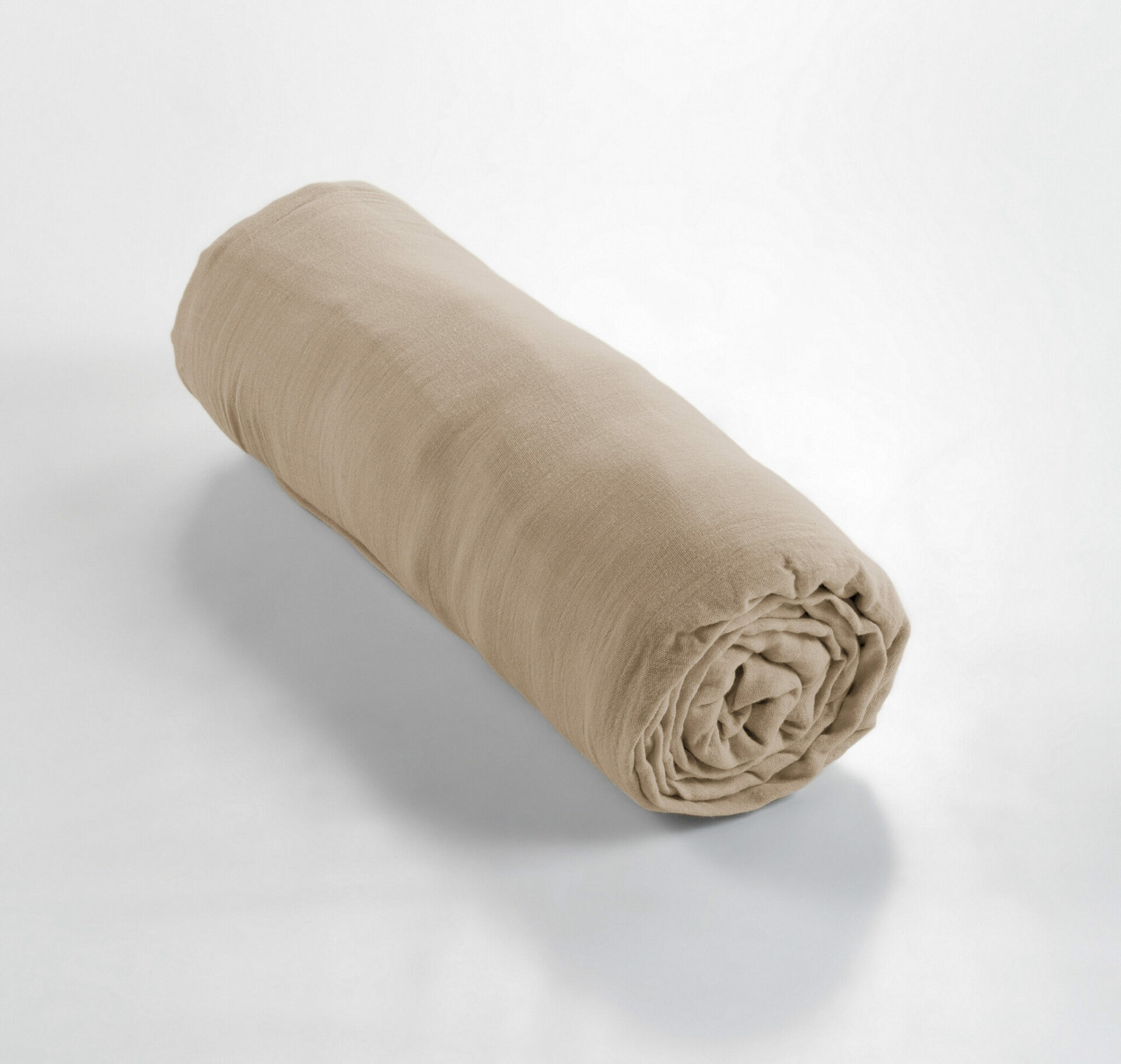 Drap housse 160 x 200 cm Gaze de coton unie GAÏA Ficelle