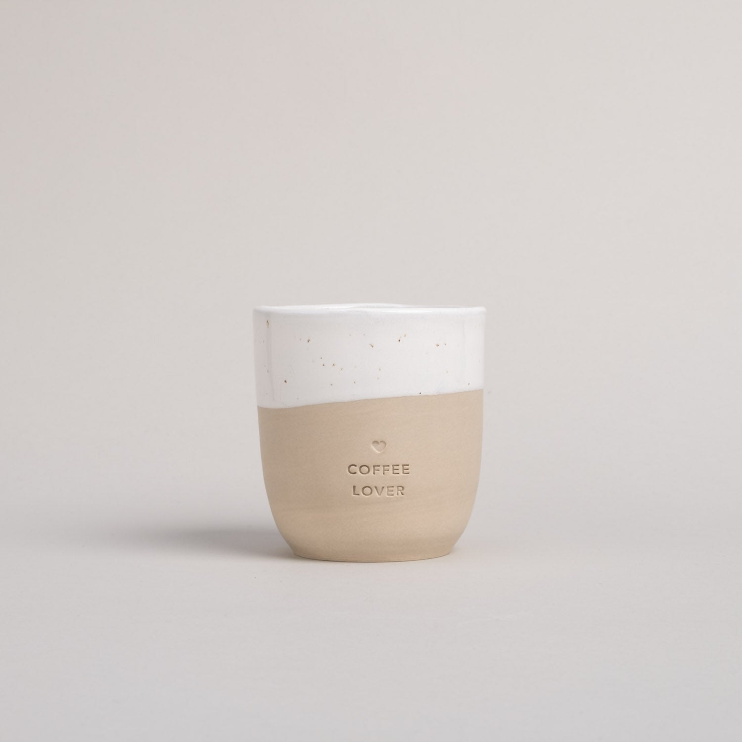Une petite poterie du Portugal produit ces magnifiques gobelets à la main avec amour et est un excellent nouveau compagnon sur notre chemin créatif. Nos gobelets font battre le cœur plus fort de ceux qui aiment l’individualité de l’argile et de l’émail, car chaque gobelet a sa propre touche unique. Le design minimaliste et les nuances de couleurs naturelles sont complétés par un magnifique embossage à sec « Coffee Lover ».